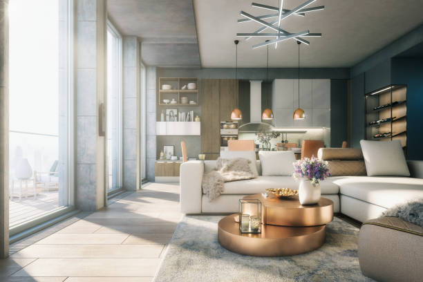 Interior design with furniture and gypsum board